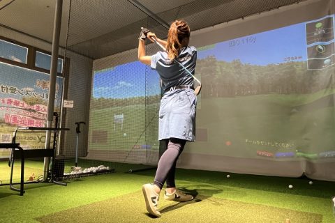 一球毎に自身のスイングフォームとボールの軌道をスクリーンとモニターで確認できます。